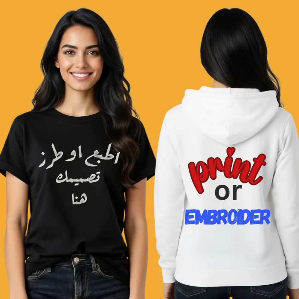 Print On Demand or Embroidery on Demand on many locations on garments, uniforms, T-shirts, Hoodie, Polo-shirt and others