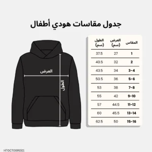 - الحد الاقصى لمساحة التطريز في هودي الأطفال هو 16×16 سنتيمتر. و سنقوم نحن بتقدير المساحه بما يتناسب مع مقاس هودي الأطفال (خاصة في المقاسات الصغيرة)