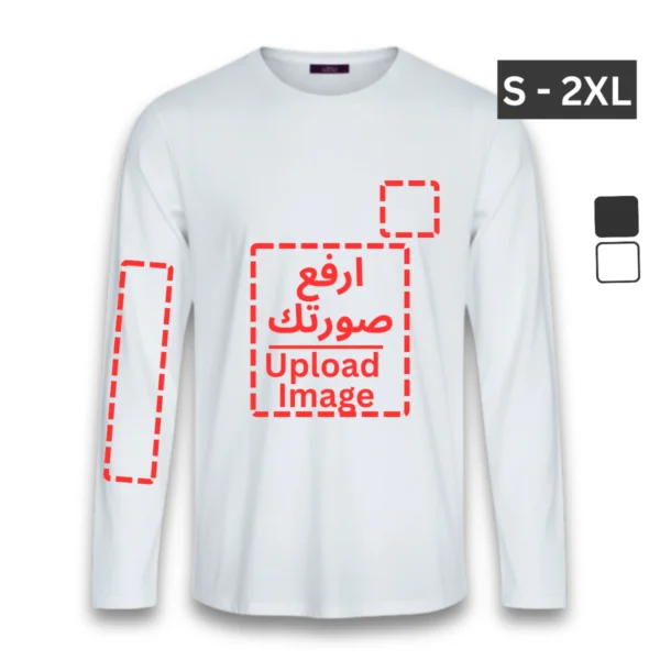 تيشيرت كم طويل طباعة و تطريز حسب الطلب يمنحك كامل الحرية لطباعة او تطريز أي تصميم أو شعار أو صورة بأسلوبك الخاص المميز وبسهولة تامة.